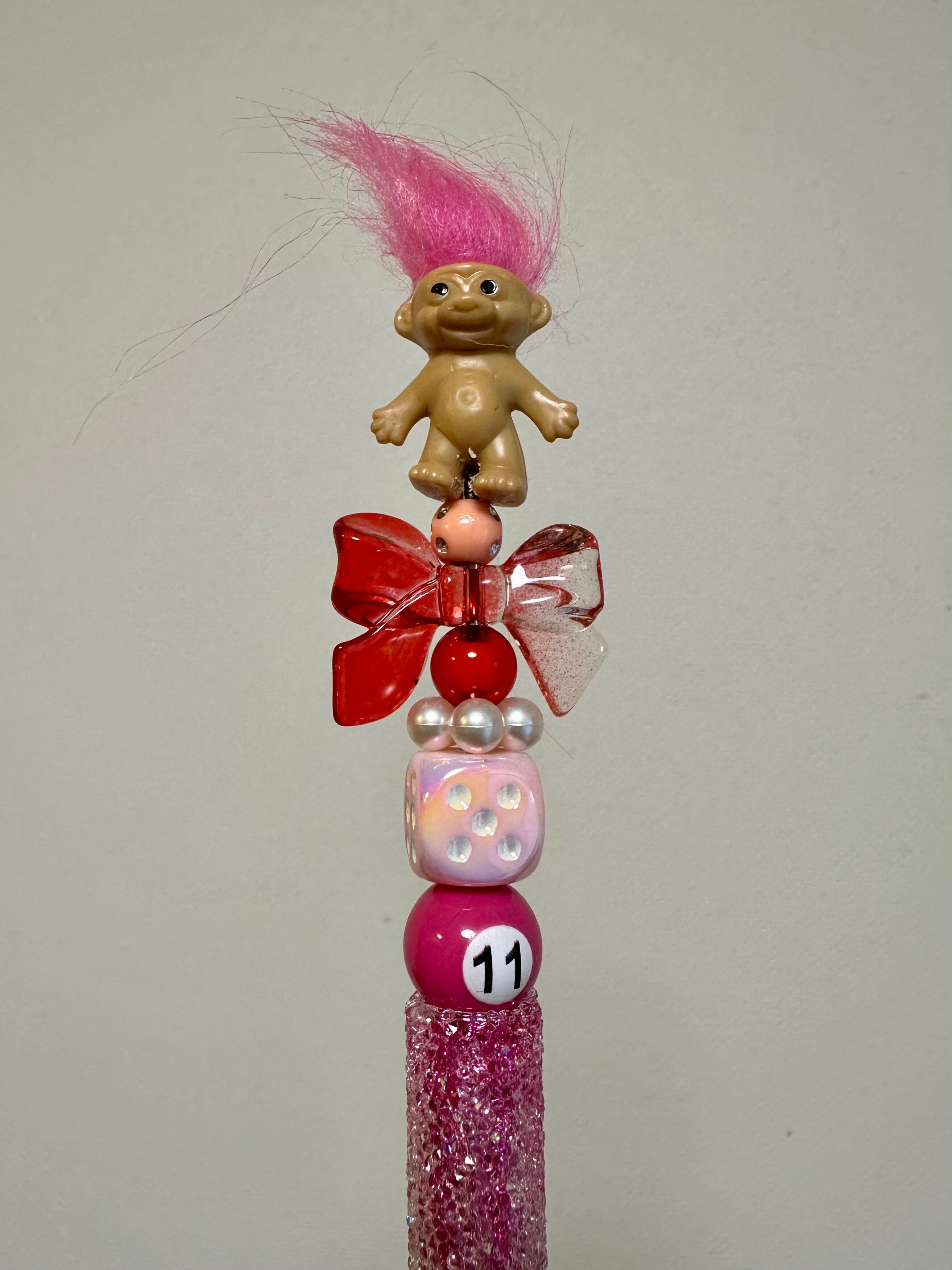 ※カスタムビーズボールペンに海外製品のビーズを通して、トップを外し、穴を開けたトロールを接着しています。トロールがうまく安定するようにバランスを取っているため、向きや角度に個体差があります。