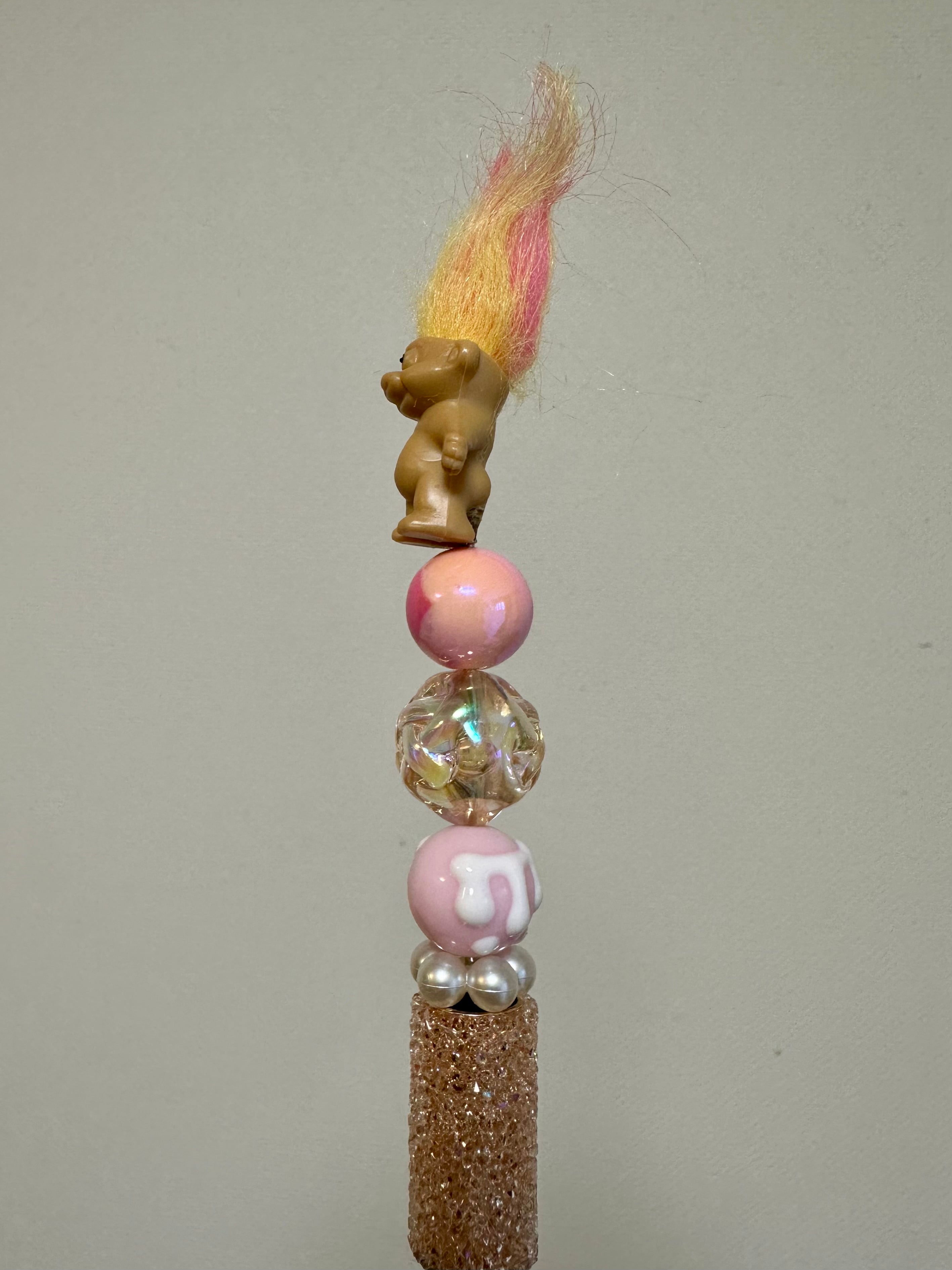 ※カスタムビーズボールペンに海外製品のビーズを通して、トップを外し、穴を開けたトロールを接着しています。トロールがうまく安定するようにバランスを取っているため、向きや角度に個体差があります。